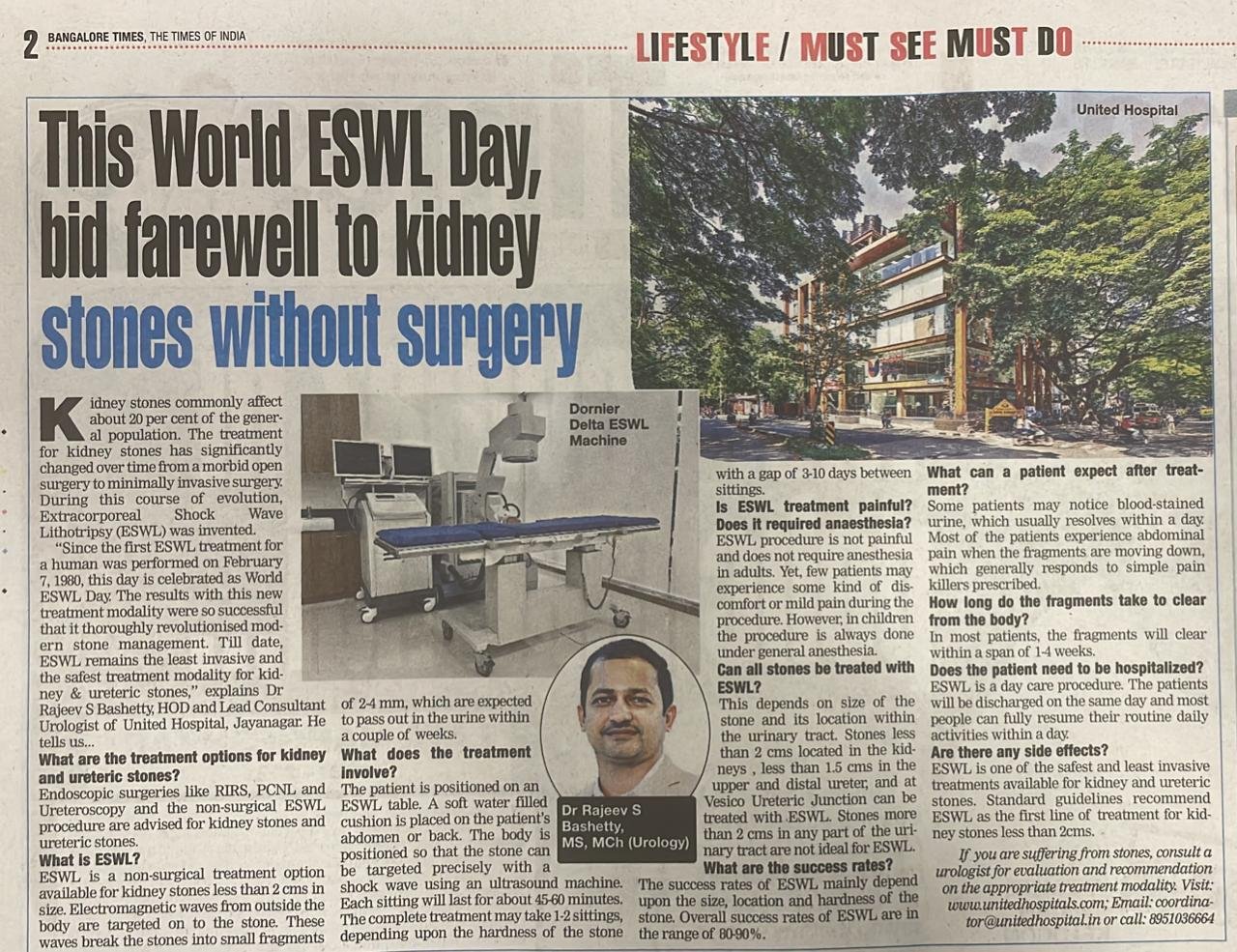 On the occasion of world ESWL day, people awareness article was published in Times of India on Feb 7, 2022